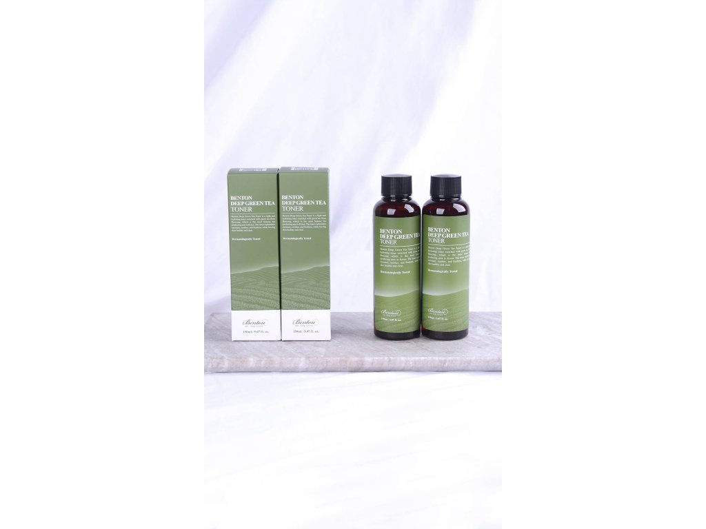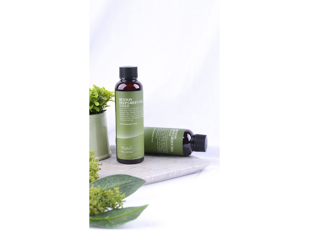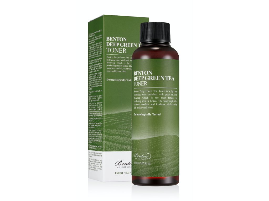 Benton Deep Green Tea Toner je ľahké, jemné a hydratačné tonikum obohatené o 50 % zeleného čaju z Boseongu, najznámejšej kórejskej oblasti produkujúcej čaj.???*Použitie* Používajte Deep Green Tea Toner na reguláciu rovnováhy medzi olejom a vodou v pleti, na upokojenie a oživenie pleti.??? ???*Zloženie* Voda z listov kamélie čínskej (Camellia Sinensis), Aqua (voda), butylénglykol, 1,2-hexanediol, glycerín, pentylénglykol, hyaluronát sodný, výťažok z Centella Asiatica, výťažok z Houttuynia Cordata, Extrakt z listov Camellia Sinensis, extrakt zo semien Camellia Sinensis, extrakt z koreňa Camellia Sinensis, extrakt z kôry vŕby Salix Nigra, extrakt z plodov Punica Granatum, betaín.??? ???*Ako používať* Naneste na vatový tampón a jemne rozotrite po tvári. Prípadne nalejte do dlaní a jemne poklepte na tvár, aby ste podporili vstrebávanie.???