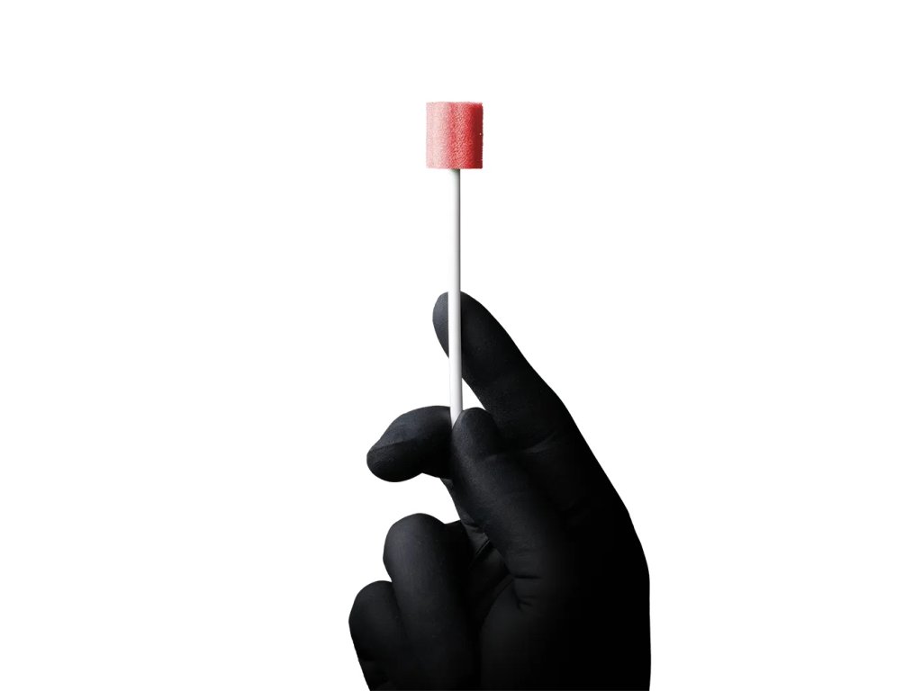 Tyčinky na ústnu hygienu z PP s PU špongiou, 100 mm, príchuť ríbezle, ružová hlavička