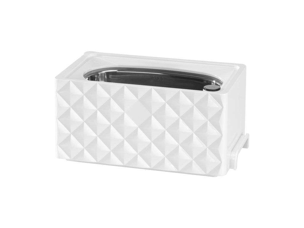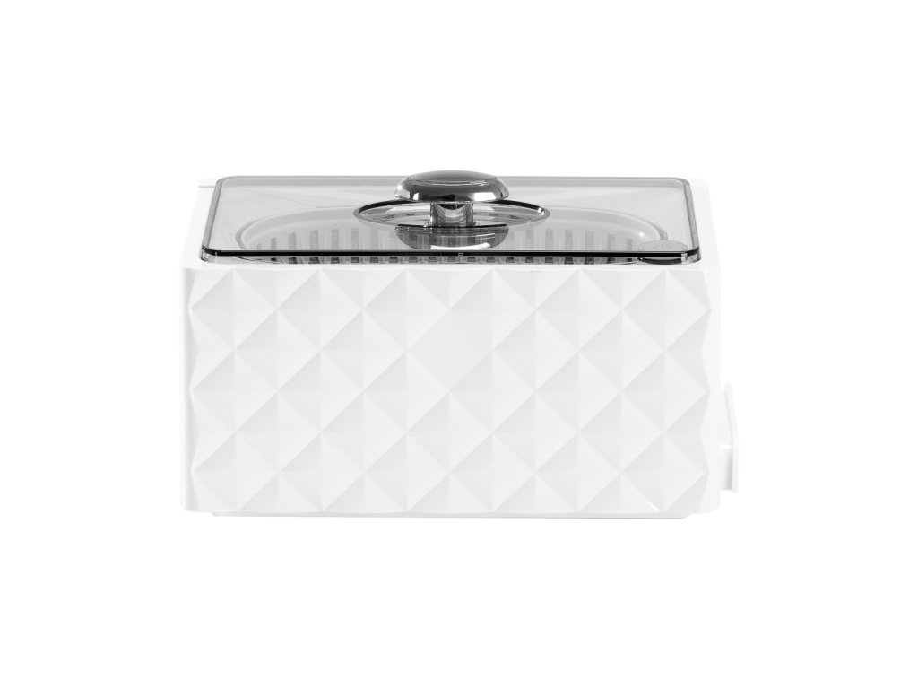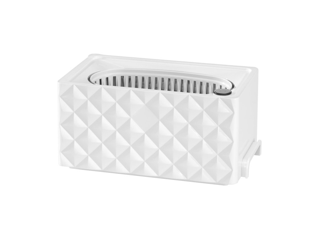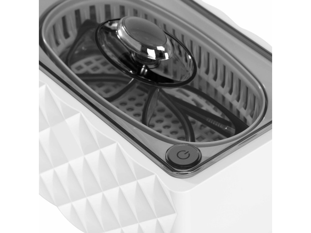 Vďaka malým rozmerom sa táto ultrazvuková čistička veľmi ľahko prepravuje a navyše nezaberá v salóne príliš veľa miesta. Esteticky zdobený kryt je vyrobený z plastu v odtieňoch bielej farby a priehľadné veko umožňuje priebežne pozorovať proces a nesťažuje zapnutie prístroja, aj keď je tlačidlo ukryté pod ním. Vnútro nádoby je označené značkou maximálneho naplnenia tekutinou (do 300 ml). Stabilitu zariadenia zabezpečujú protišmykové nožičky.