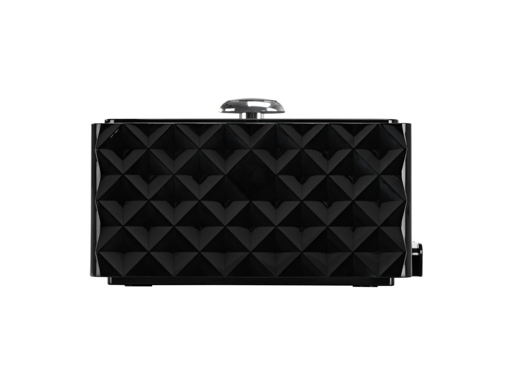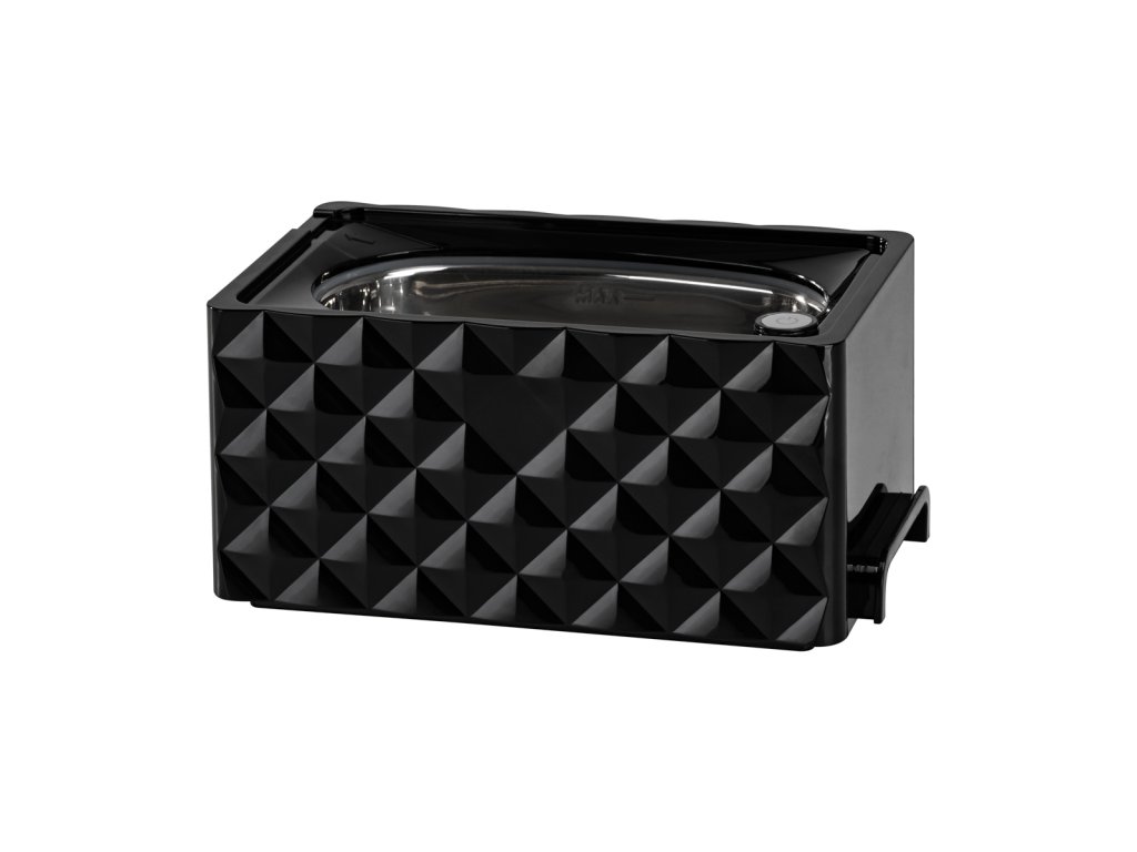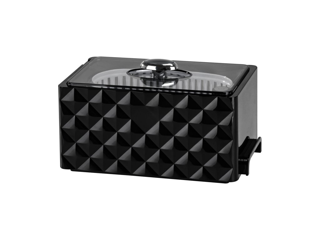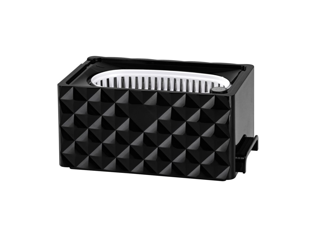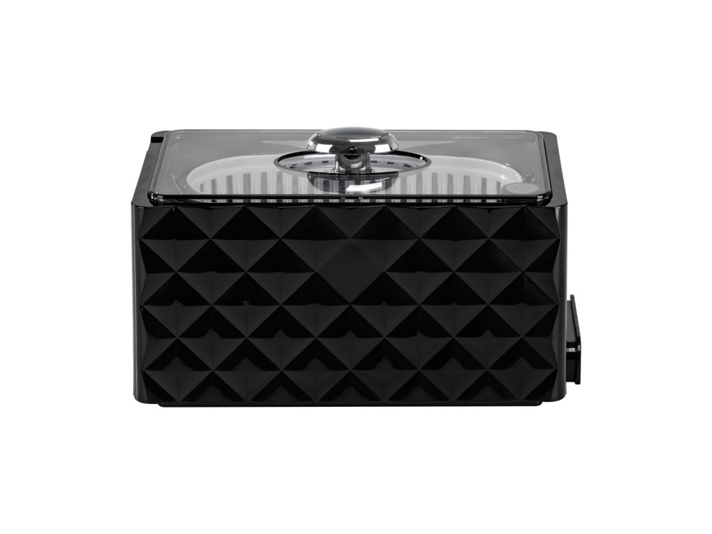 Vďaka malým rozmerom sa táto ultrazvuková čistička veľmi ľahko prepravuje a navyše nezaberá v salóne príliš veľa miesta. Esteticky zdobený kryt je vyrobený z plastu v odtieňoch čiernej farby a priehľadné veko umožňuje priebežne pozorovať proces a nesťažuje zapnutie prístroja, aj keď je pod ním skryté tlačidlo. Vnútro nádoby je označené značkou maximálneho naplnenia tekutinou (do 300 ml). Stabilitu zariadenia zabezpečujú protišmykové nožičky.