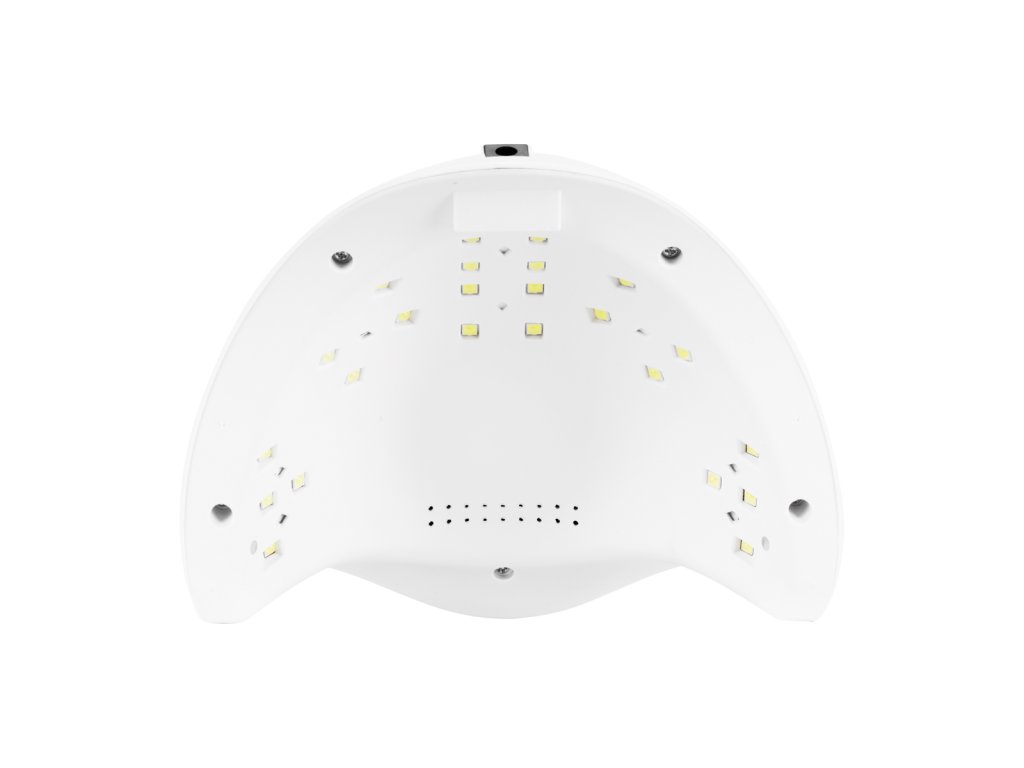 profesionálna UV/LED lampa najnovšej generácie, ktorá rýchlo a rovnomerne vytvrdzuje všetky gély, hybridné laky a iné prípravky vytvrdzované svetlom vďaka použitiu duálnej LED technológie. vyžaruje biele svetlo, ktoré neunavuje zrak. Lampa Sun 5 má vysoko výkonný, energeticky úsporný zdroj svetla a duálnu vlnovú dĺžku 365nm a 405nm. Navyše 24 LED diód poskytuje celkový maximálny výkon 48 W. lampa má zabudovaný snímač pohybu, časovač 10, 30, 60 a 99 sekúnd a po aktivácii snímača svieti nepretržite 120 sekúnd. 99-sekundový "režim nízkeho tepla" je režim, v ktorom sa výkon lampy postupne zvyšuje každých 30 sekúnd. Znižuje pocit pálenia počas aplikácie stavebných gélov. veľký elektronický displej uľahčuje kontrolu času.
