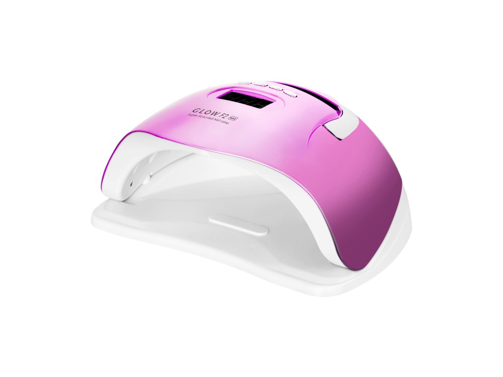 Je vybavený až57 správne usporiadaných LED diód (bez tzv. "mŕtvej zóny") scelkový výkon 220 W, čím sa zabezpečí dokonalé vytvrdnutie gélov a hybridných lakov. Model Glow F2 má uzavretý tvar,takzvaný stánok, ktorý umožňuje rovnomerné a presné vytvrdnutie nechtového stylingu.Technológia Dual Led použité v tomto zariadení spôsobujú, že diódy vyžarujú svetlo dvoch vlnových dĺžok,neunavuje oči a poskytuje široké spektrum prevádzky. Vďaka použitým riešeniam,lampa rýchlo a správne lieči aj tie najnáročnejšie produkty, ktoré sa dostanú aj na najnedostupnejšie miesta na nechtovej platničke.