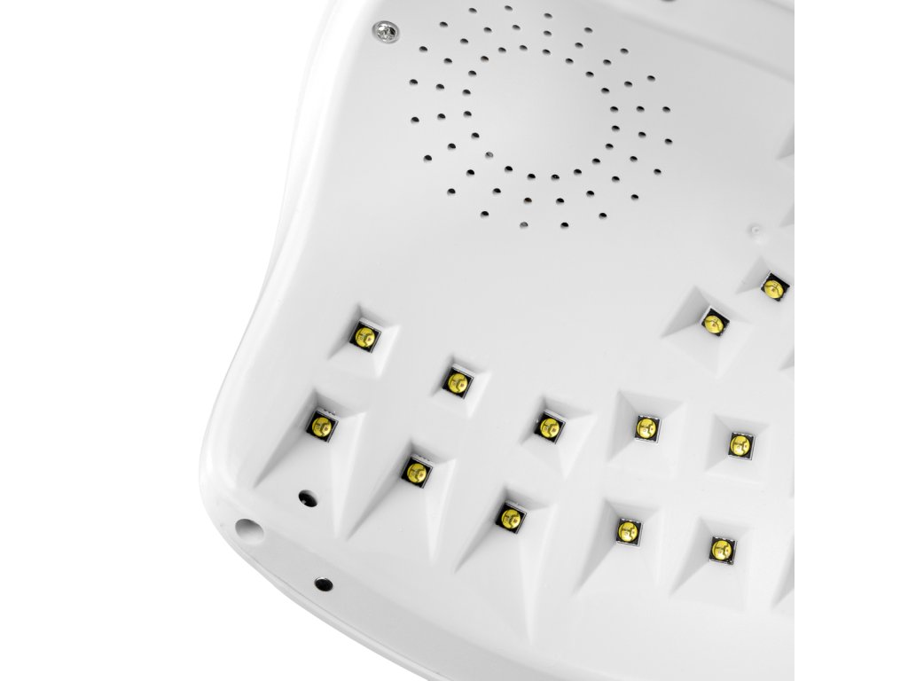 36 presne umiestnených LED diód zabezpečuje dokonalé vytvrdnutie gélov a hybridných leštiacich prostriedkov, čím sa eliminuje riziko tzv. mŕtvej zóny. Stránkauzavretý dizajn, ktorá sa nazýva kabína, umožňuje presnejšie a rýchlejšie vytvrdzovanie nechtových vzorov. Vďaka technológii Dual LED,diódy vyžarujú svetlo dvoch vlnových dĺžok, čím sa znižuje únava očí a predlžuje dosah zariadenia. Zrkadlová spodná časť rovnomerne odráža svetlo,urýchlenie a optimalizácia procesu vytvrdzovania na celom povrchu nechtu. Tieto vlastnosti uľahčujú správne vytvrdenie aj tých najnáročnejších produktov a umožňujú prístup k ťažšie dostupným oblastiam nechtovej platničky.