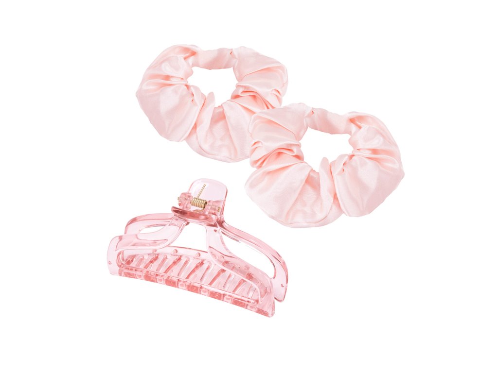 Sada obsahuje: valček, sponku do vlasov, dve gumičky do vlasov (obaly).