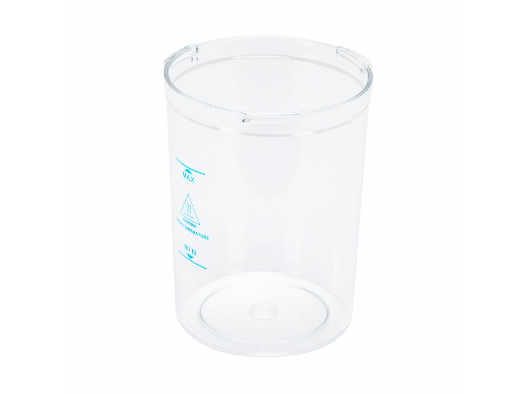 Vymeniteľná nádoba z priehľadného plastu odolného voči vysokým teplotám. Pohár má tieto vlastnostioznačenie minimálnej a maximálnej hladiny vody pre bezpečné používanie. Jeho ľahká konštrukcia a hladký povrch poskytujúľahké čistenie. Vymeniteľná nádoba na vodus priemerom približne 11 cm a vyznačeným maximálnym objemom 750 ml,vhodné pre vapozóny Giovanni D-20 a D-21 so zväčšovacou lampou a pre saunový zvlhčovač vlasov Gabbiano JY-150.