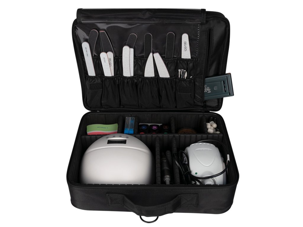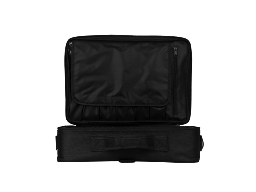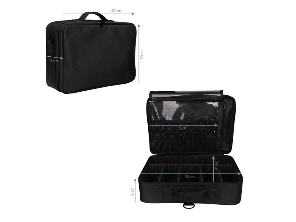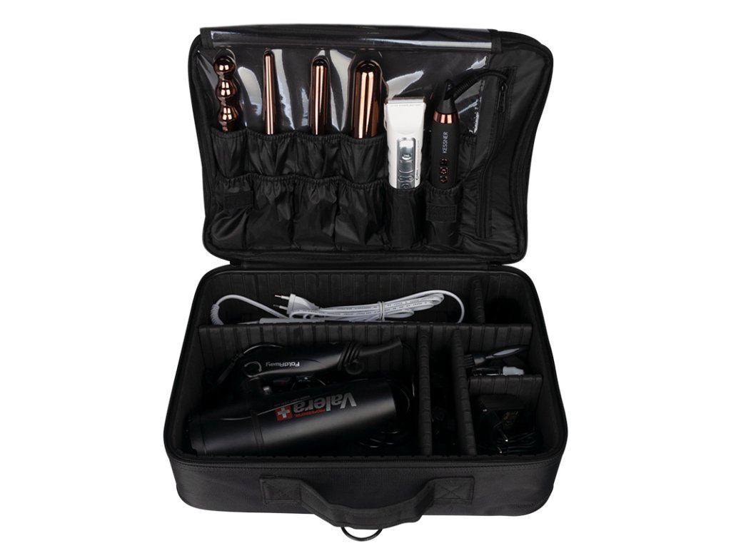 elegantný kufor vyrobený z odolného materiálu. vybavený rukoväťou na jednoduché prenášanie a ramenným popruhom. interiér má nastaviteľné dištančné prvky, ktoré umožňujú prispôsobiť interiér vašim potrebám. ideálny na prenášanie frézky, sušičky s príslušenstvom.