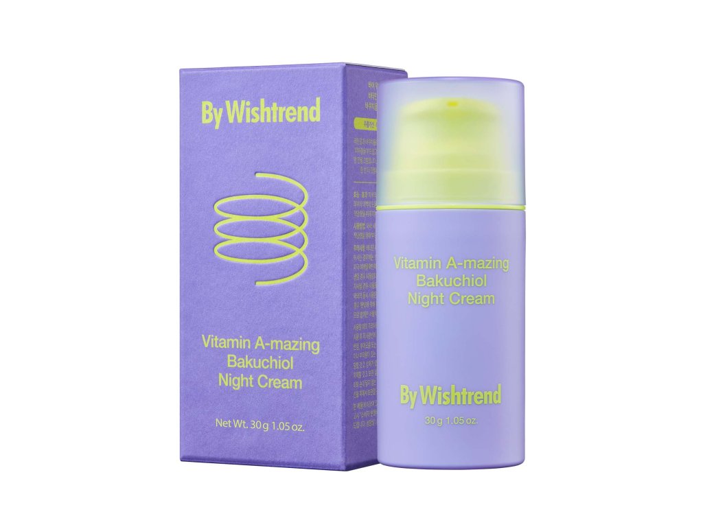 Tento nočný krém od kórejskej značky By Wishtrend obsahuje Retinal a Bakuchiol, dve zložky proti starnutiu, ktoré podporujú pevnejšiu a omladenú pleť. Čím je Retinal výnimočný? Táto silná zložka sa vstrebáva oveľa rýchlejšie ako retinol. V porovnaní s inými retinoidmi sa aj lepšie znáša, takže je vhodná pre všetky typy pleti. Dôsledné používanie pomáha podporovať rovnomernejšiu pleť a redukuje jemné vrásky a známky starnutia. Okrem toho je spojená s bakuchiolom, ""rastlinnou verziou retinolu"", ideálnou zložkou pre citlivú pleť, pretože predstavuje nižšie riziko podráždenia. Jeho textúra je mierne sýta, žltej farby a bez parfumácie. Neodporúčame kombinovať tento výrobok s inými exfoliačnými prípravkami alebo vitamínom C v rámci rovnakej rutiny.???*Použitie*Používajte tento nočný krém na zlepšenie štruktúry pleti minimalizovaním pórov a podporou obnovy pleti počas noci. Pomáha tiež znižovať výskyt prvých známok starnutia.??? ???*Zloženie*Aqua (voda), glycerín, kaprylový/kapricový triglycerid, hydrogenovaný polydecén, betaín, fenyltrimethicone, polyglyceryl-3 metylglukóza distearát, cetylalkohol, olej zo semien makadamie (Macadamia Integrifolia Seed Oil), niacínamid, Glyceryl glukozid, glyceryl stearát, bakuchiol, behenylalkohol, trehalóza, pentaerytrityl distearát, 1,2-hexándiol, polyglyceryl-10 laurát, kopolymér amónneho akryloyldimetyltaurátu/VP, dipropylénglykol, Hydroxyacetofenón, extrakt z listov Eclipta Prostrata, extrakt z Laminaria Japonica, stearoylglutamát sodný, etylhexylglycerín, glukóza, adenozín, fruktooligosacharidy, butylénglykol, hyaluronát sodný, Retinal, Hydrogenovaný lecitín, beta-glukán, hydrolyzovaná kyselina hyalurónová, výťažok z Centella Asiatica, výťažok z plodov Ficus Carica (figovník), ceramid NP, tokoferol, kolagén, leukonostok/fermentný filtrát z koreňa reďkovky, dextrán, palmitoyltripeptid-8??? ???*Ako používať* Ako posledný krok vašej nočnej rutiny naneste rovnomerne požadované množstvo na pleť. Keďže obsahuje Retinal a Bakuchiol, odporúčame ho spočiatku nepoužívať denne. Postupne zvyšujte frekvenciu používania, keď sa vaša pleť prispôsobí. Nezabudnite: Nanášanie opaľovacieho krému nasledujúce ráno je nevyhnutné.???