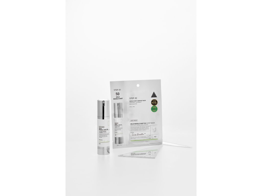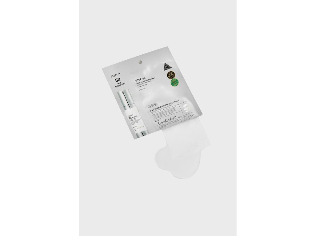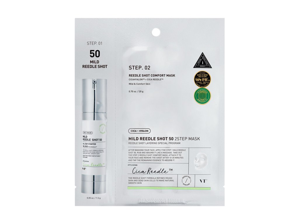 VT Mild Reedle Shot 50 2-Step Mask je inovatívne dvojfázové ošetrenie tváre, ktoré kombinuje pokročilú technológiu s upokojujúcimi zložkami na zdokonalenie štruktúry pleti a zabezpečenie dlhotrvajúcej hydratácie. Tento systém je špeciálne vyvinutý tak, aby pomáhal minimalizovať vzhľad pórov a podporoval rovnomernejší a žiarivejší vzhľad pleti. Prvý krok, Reedle Shot 50 Essence, obsahuje 237 500 mikroihličiek CICA navrhnutých tak, aby napodobňovali účinky mikroihličiek. Ich ultrajemná veľkosť - 14-krát menšia ako priemerný pór - zvyšuje hĺbkovú absorpciu aktívnych zložiek pre maximálnu účinnosť. Zloženie obsahuje CicaHyalon™, zmes centella asiatica a troch typov kyseliny hyalurónovej, ktorá upokojuje, hydratuje a posilňuje kožnú bariéru. Druhý krok, Reedle Shot Balance Sheet Mask, posilňuje účinky prvého kroku. Pleťová maska napustená sérom uzamyká vlhkosť, poskytuje výživu a podporuje rovnováhu pleti, ktorú zanecháva pohodlnú a sviežu. Táto maska 2 v 1 je ideálna pre tých, ktorí hľadajú intenzívnu starostlivosť bez narušenia tolerancie pleti, dokonca aj pre citlivé alebo reaktívne typy pleti.???*Použitie*Použite túto dvojkrokovú masku na zdokonalenie štruktúry pleti, minimalizáciu pórov a hĺbkovú hydratáciu.??? ???*Zloženie*[STEP.01] Aqua (voda), dipropylénglykol, glycerín, niacínamid, butylénglykol, olej zo semien Macadamia Ternifolia, 1,2-hexanediol, etylhexylpalmitát, polyakrylát sodný, kopolymér akrylátu sodného/akryloyldimetyltaurátu sodného, polyizobutén, glyceret-26, oxid kremičitý, kaprylylglykol, Etylhexylglycerín, adenozín, hyaluronát sodný, kaprylyl/kaprylglukozid, sorbitán oleát, extrakt z Centella Asiatica, glycerylglukozid, xantánová guma, extrakt z listov Aloe Barbadensis, glukóza, astaxantín, extrakt z propolisu, asiaticosid, kyselina ázijská, kyselina madekastová, madekastozid [STEP.02] Aqua (voda), glycerín, niacínamid, butylénglykol, dipropylénglykol, 1,2-hexanediol, betaín, hydroxyacetofenón, hydroxyetylmočovina, dietoxyetylsukcinát, pantenol, kopolymér amónneho akryloyldimetyltaurátu/VP, alantoín, arginín, karbomér, etylhexylglycerín, xantánová guma, Hydroxyetyl-akrylát/kopolymér akryloyldimetyltaurátu sodného, adenozín, EDTA disodná soľ, polyakrylát sodný, sorbitan izostearát, extrakt z Centella Asiatica, šťava z Betula Alba, extrakt z Houttuynia Cordata, oxid kremičitý, hyaluronát sodný, kyselina hyalurónová, kyselina ázijská, ázijatikozid, kyselina madekastová, madekastozid, extrakt z propolisu??? ???*Ako používať*Naneste Reedle Shot 50 Essence na čistú pleť a jemným stlačením aktivujte mikroihličky. Priložte na tvár fóliovú masku a nechajte pôsobiť 20-30 minút. Masku odstráňte a jemne vmasírujte zvyšné sérum, kým sa úplne nevstrebe. Nie je potrebné oplachovať. Používajte 1-2 krát týždenne v závislosti od potrieb pleti.???