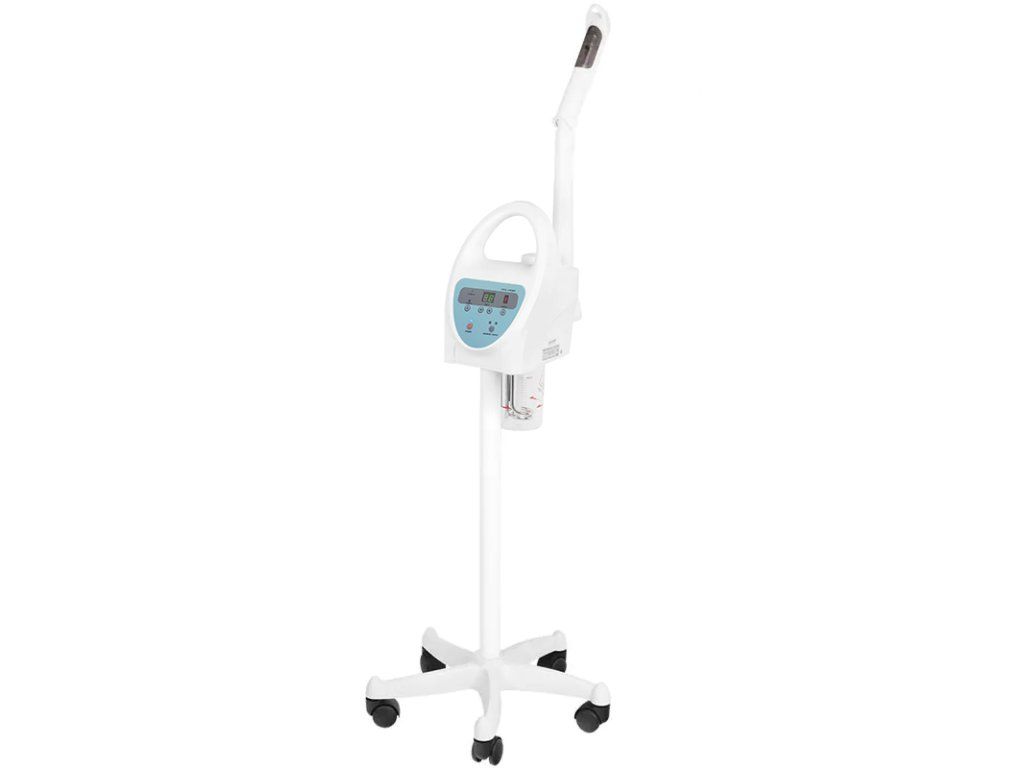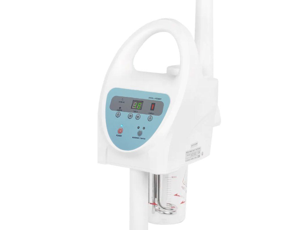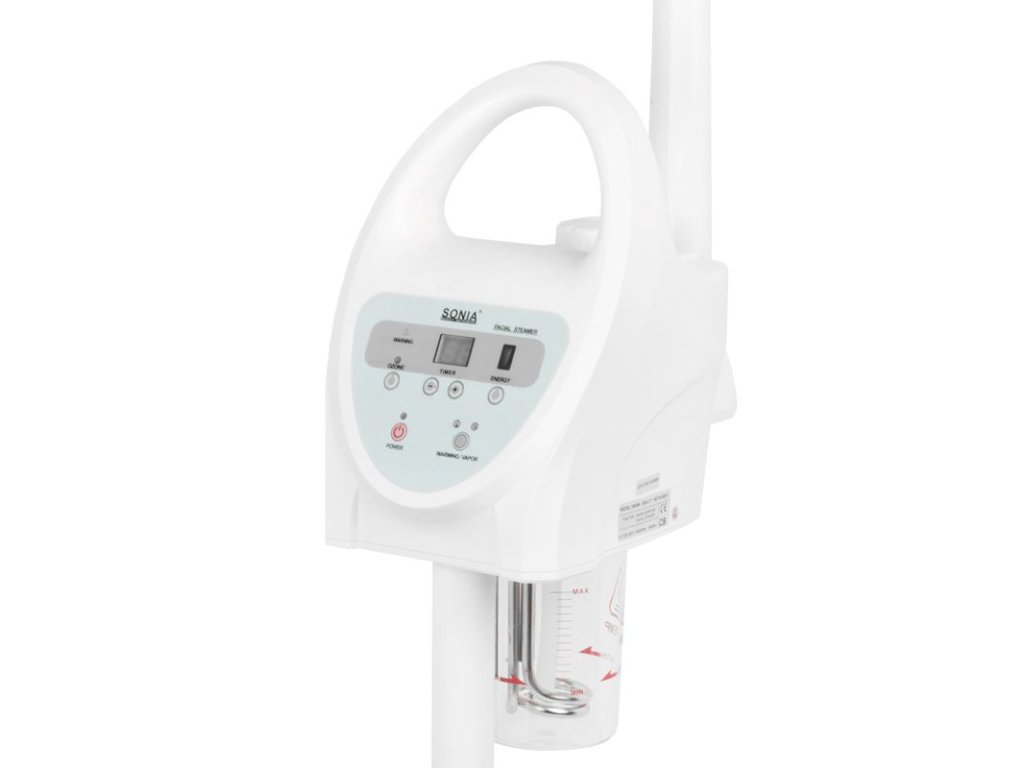 multifunkčný naparovač s horúcou parou, aromaterapiou a ozónom a nastaviteľnou intenzitou pary. tryska naparovača má klin, vďaka ktorému môžeme prúd pary nasmerovať na zákazníka.