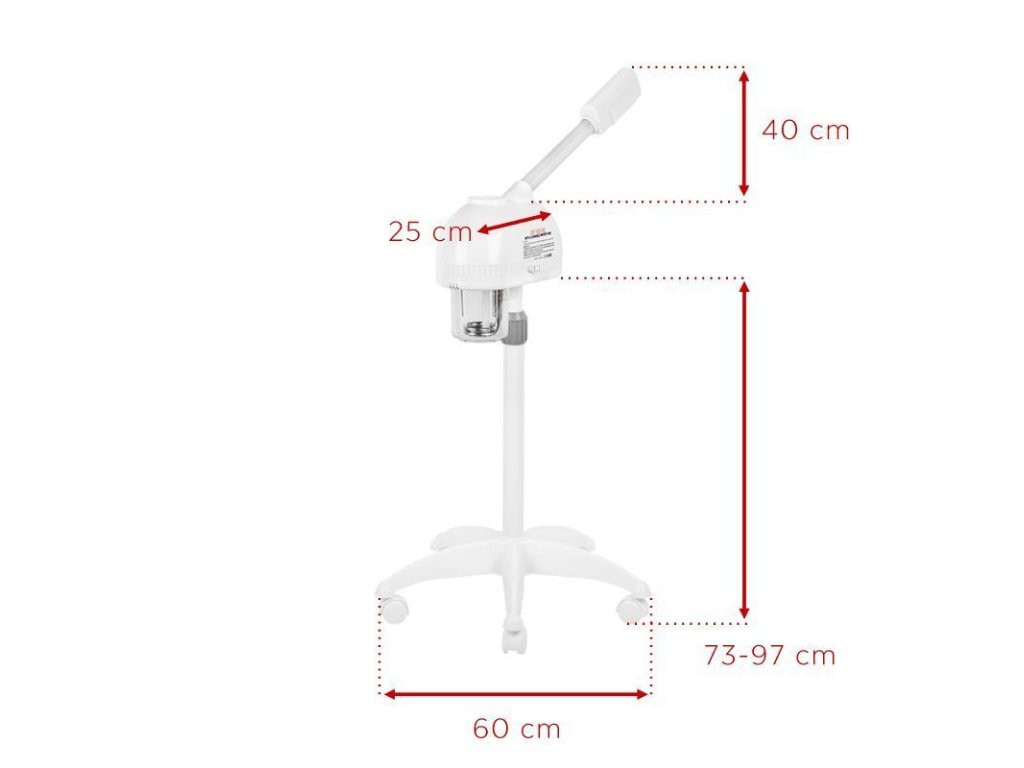 multifunkčný odparovač s horúcou parou a ozónom. wapozon je umiestnený na stojane s nastaviteľnou výškou. tento prístroj je nepostrádateľným zariadením v každom kozmetickom salóne.