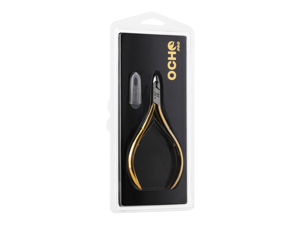 Profesionálne kliešte na kožičku OCHO sú vyrobené z vysokokvalitnej nehrdzavejúcej ocele a majú dvojitú pružinu, ktorá výrazne uľahčuje prácu. Sú mimoriadne odolné, ľahké a ostré. Čepeľ je leštená a kliešte majú zlatý lesklý povrch. Špeciálne tvarovaná rukoväť v klasickom režime zaručuje vysokú presnosť, pohodlie a jednoduchú prácu.
