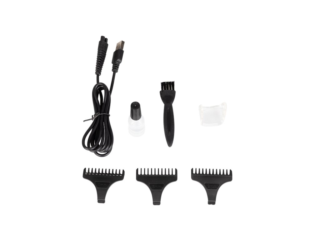 najdôležitejšou súčasťou strojčeka je moderná t-čepeľ vyrobená z nehrdzavejúcej ocele. umožňuje presnú a bezbolestnú úpravu vlasov akýmkoľvek spôsobom. Nástavce rôznych veľkostí, ktoré sú súčasťou sady, umožňujú zvoliť si dĺžku strihu, čo umožňuje jednoduché tieňovanie vlasov.